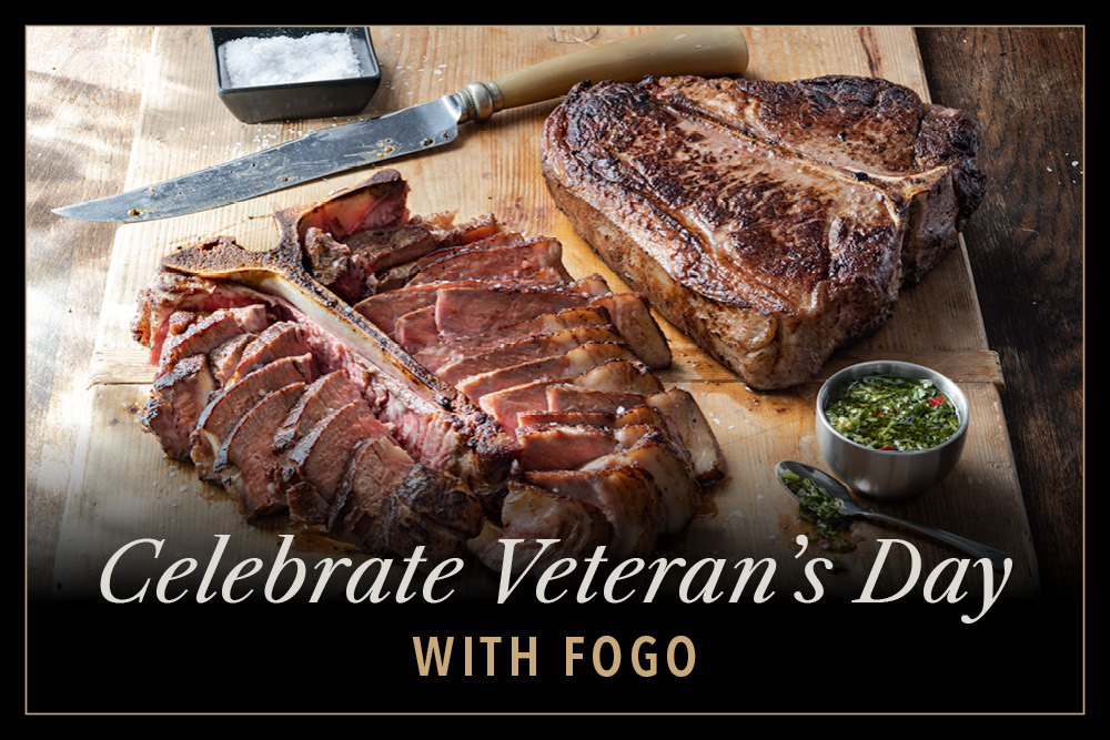 We appreciate our service members, so as a thank you, FOGO is offering a special deal through Veteran’s Day Weekend. With a valid military ID, active-duty personnel and veterans will receive 50% off Full Churrasco or Indulgent Churrasco meals fr themselves, and 10% off Full Churrasco or Indulgent Churrasco meals for their guests.