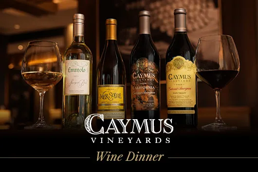 Join us on Thursday, March 19th for a four-course chef-curated experience featuring premium wines from Caymus Vineyards. Make your reservations now, space is limited.